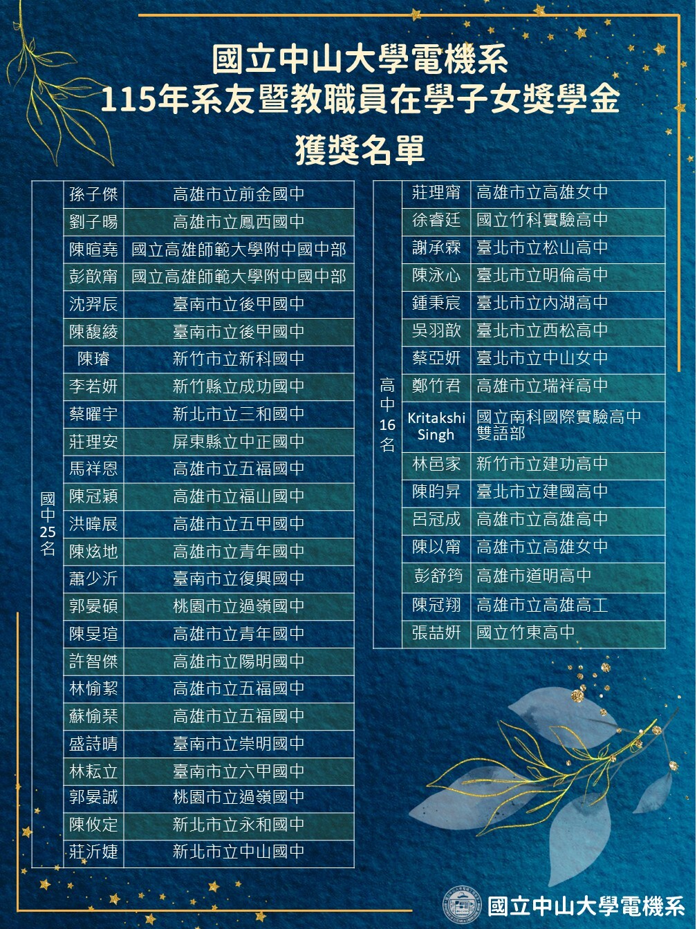 中山電機系在校生獎學金 獲獎名單(另開頁面)
