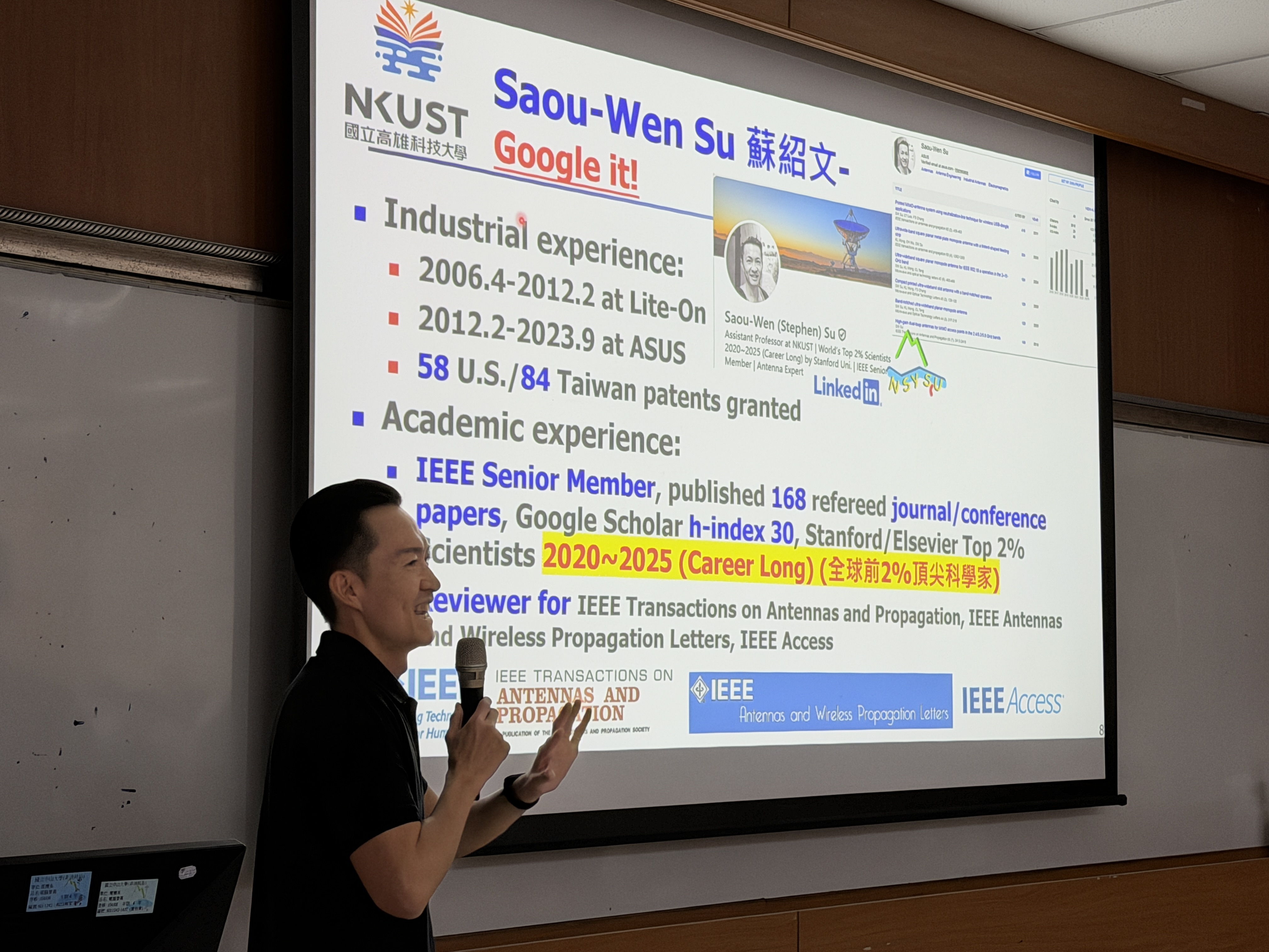 本次邀請的講者蘇學長,為中山電機系畢業校友,先後完成學士、碩士與博士學位,畢業迄今約19年,現任國立高雄科技大學電腦與通訊工程系老師。